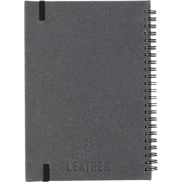 Notatnik ok. A5, posiada 80 stron w linie, miękka okładka, tasiemka zakładkowa umożliwia wygodne zaznaczanie ostatniej strony lub ważniejszych notatek, zmieści się do szkolnego plecaka, produkt wykonany ze skóry z recyklingu