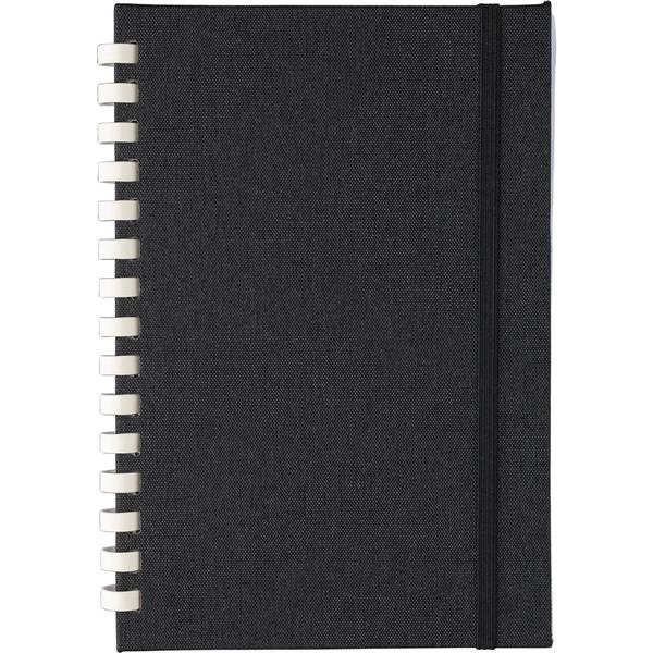 Notatnik ok. A5, 80 kartek w linie, (70 g/m2) z twardą okładką, zewnętrznym paskiem zamykającym, tasiemka zakładkowa umożliwia wygodne zaznaczanie ostatniej strony lub ważniejszych notatek, ikona RPET na produkcie
