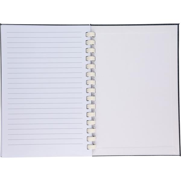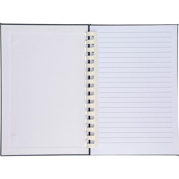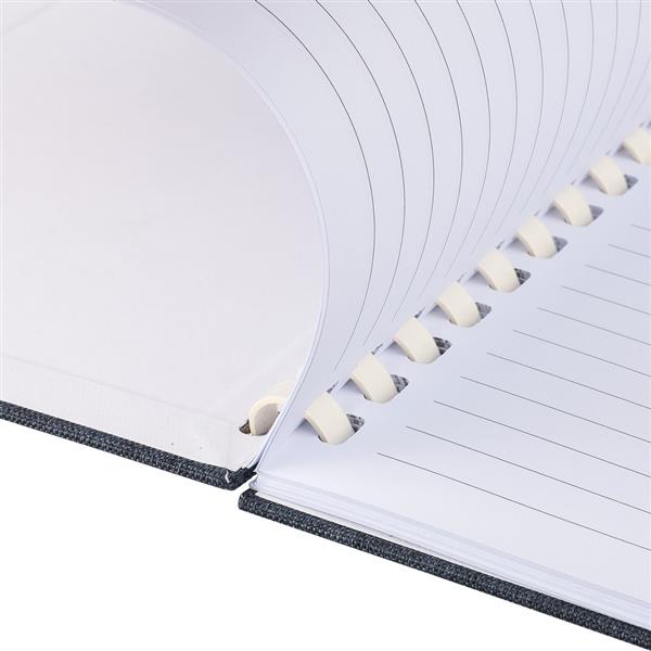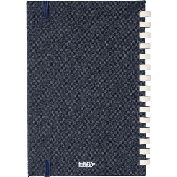 Notatnik ok. A5, 80 kartek w linie, (70 g/m2) z twardą okładką, zewnętrznym paskiem zamykającym, tasiemka zakładkowa umożliwia wygodne zaznaczanie ostatniej strony lub ważniejszych notatek, ikona RPET na produkcie