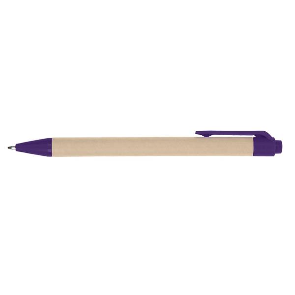 Notatnik w formacie ok. A5, posiada 60 kartek w linie (120 stron) i spiralne bindowanie, w komplecie znajduje się długopis z kolorowymi elementami, wkład w niebieskim kolorze, okładka wykonana z kartonu z kolorowym elementem przy bindowaniu