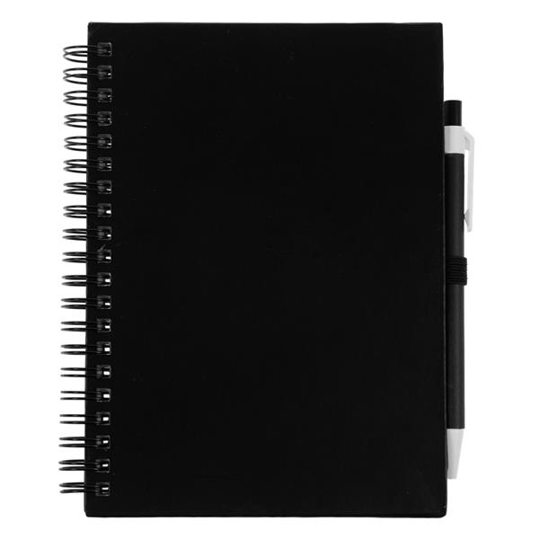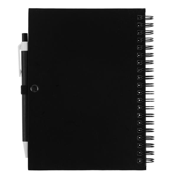 Notatnik (ok. A5, 70 pustych kartek) z okładką z kartonu z recyklingu i dopasowanym kolorystycznie długopisem z trzonem z kartonu z recyklingu, twarda okładka, spiralne bindowanie