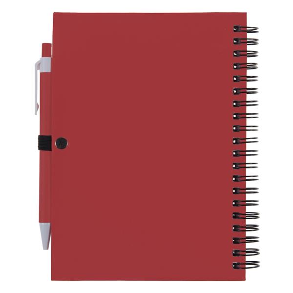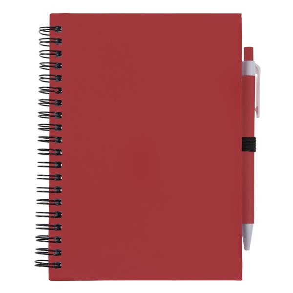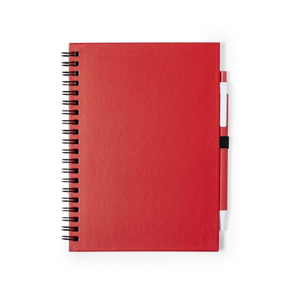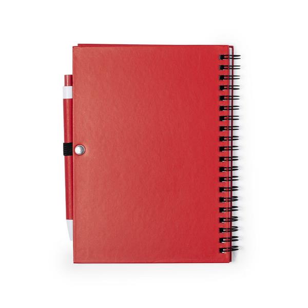 Notatnik (ok. A5, 70 pustych kartek) z okładką z kartonu z recyklingu i dopasowanym kolorystycznie długopisem z trzonem z kartonu z recyklingu, twarda okładka, spiralne bindowanie