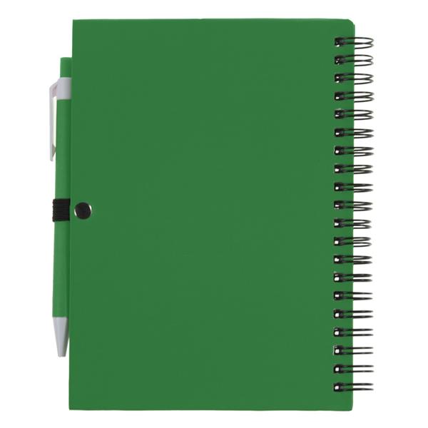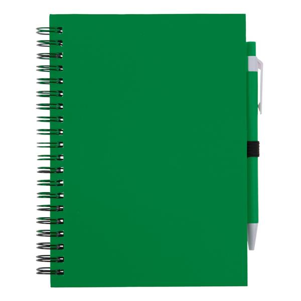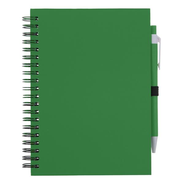 Notatnik (ok. A5, 70 pustych kartek) z okładką z kartonu z recyklingu i dopasowanym kolorystycznie długopisem z trzonem z kartonu z recyklingu, twarda okładka, spiralne bindowanie