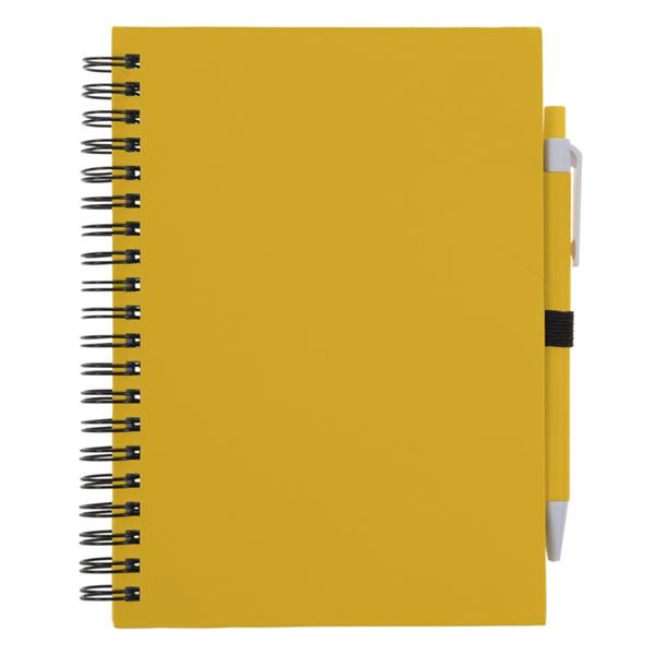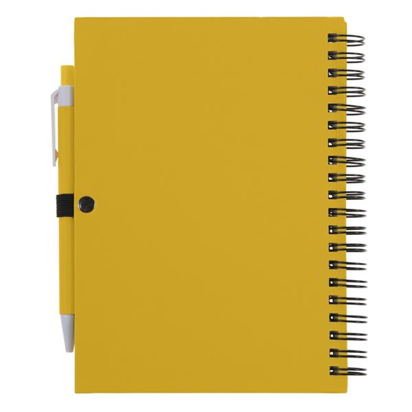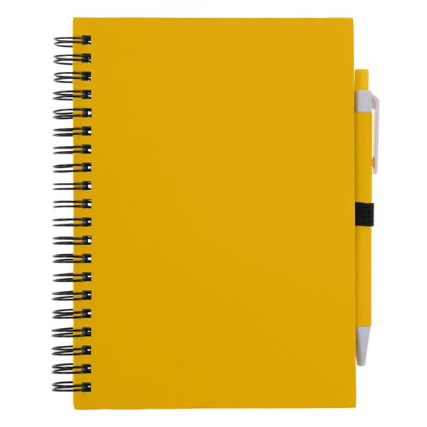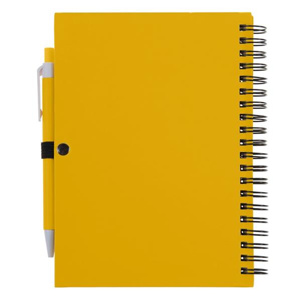 Notatnik (ok. A5, 70 pustych kartek) z okładką z kartonu z recyklingu i dopasowanym kolorystycznie długopisem z trzonem z kartonu z recyklingu, twarda okładka, spiralne bindowanie