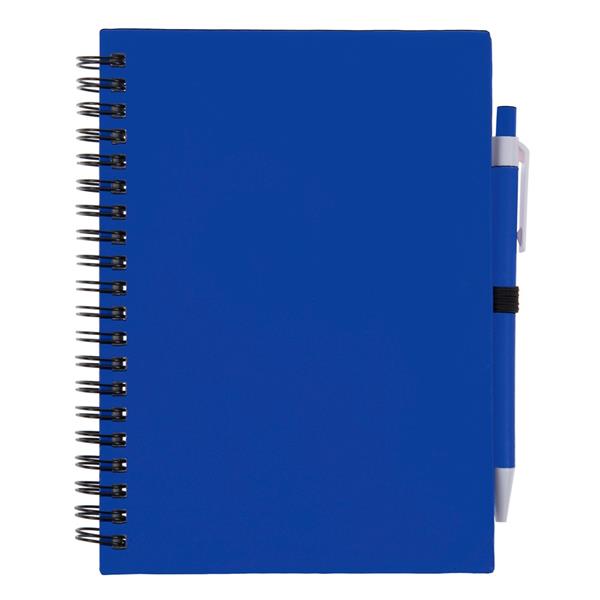 Notatnik (ok. A5, 70 pustych kartek) z okładką z kartonu z recyklingu i dopasowanym kolorystycznie długopisem z trzonem z kartonu z recyklingu, twarda okładka, spiralne bindowanie