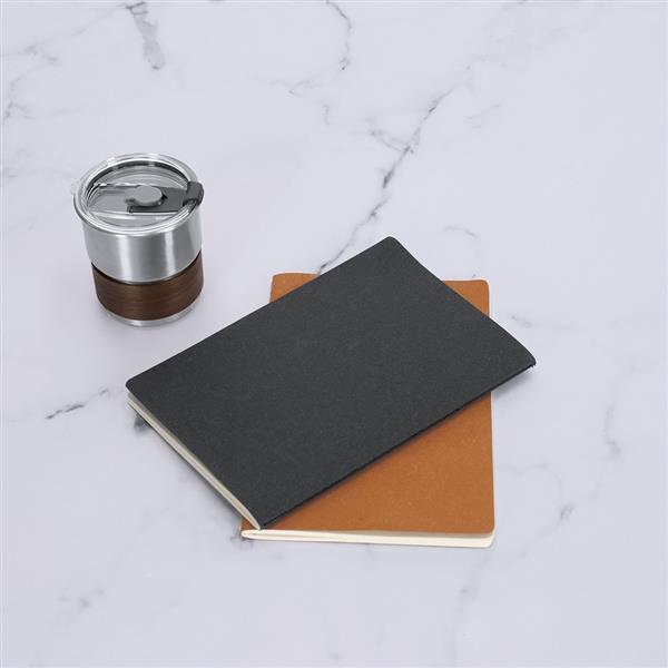 Notatnik w formacie ok. A5, posiada 60 kartek w linie, produkt wykonany ze skóry z recyklingu