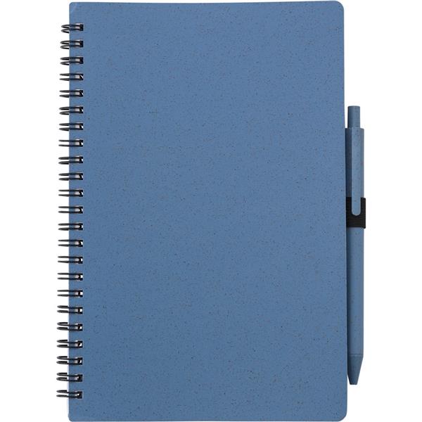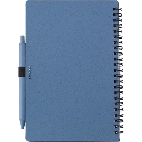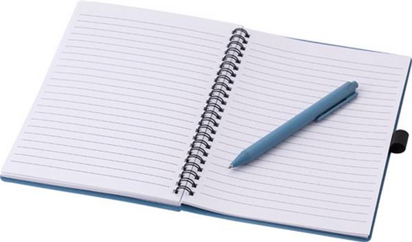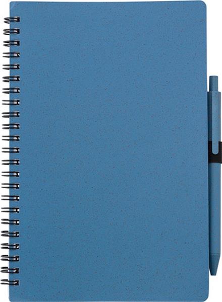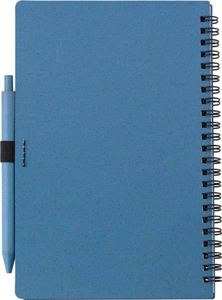 Notatnik ok. A5 (70 kartek w linie), okładka ze słomy pszenicznej i PP, długopis ze słomy pszenicznej, spiralne bindowanie