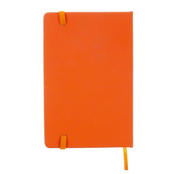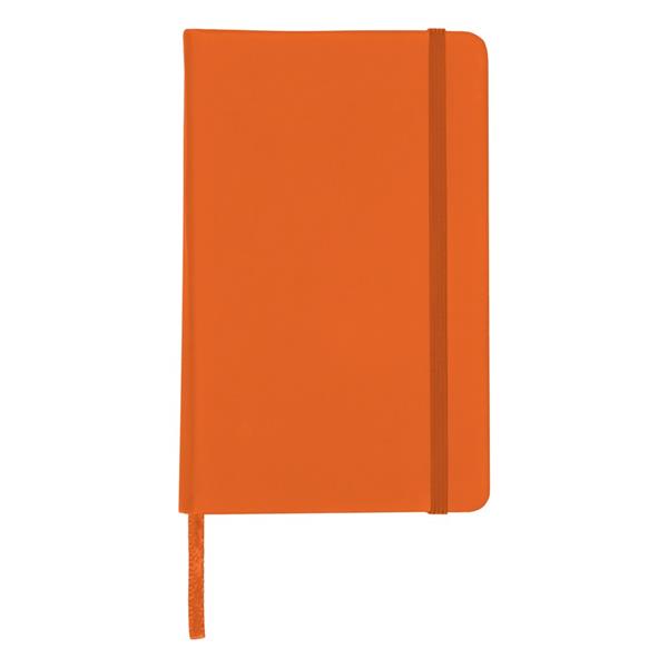 Notatnik w kieszonkowym formacie ok. A6, posiada 96 kartek w linie (192 strony), tasiemka zakładkowa umożliwia wygodne zaznaczanie ostatniej strony lub ważniejszych notatek, dodatkowe zamknięcie w postaci dopasowanej kolorystycznie elastycznej opaski, twarda okładka wykonana z PU