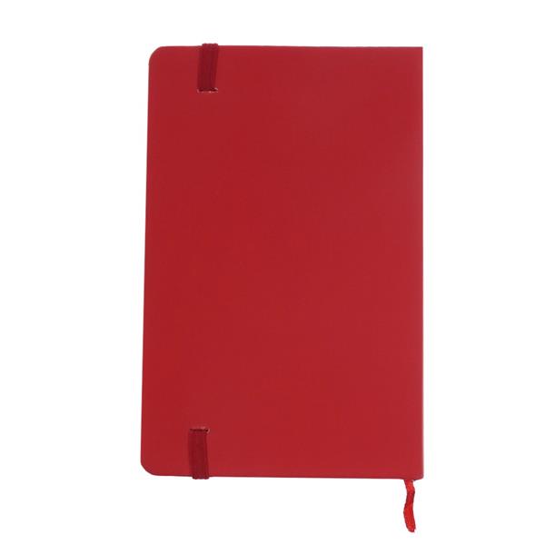Notatnik w kieszonkowym formacie ok. A6, posiada 96 kartek w linie (192 strony), tasiemka zakładkowa umożliwia wygodne zaznaczanie ostatniej strony lub ważniejszych notatek, dodatkowe zamknięcie w postaci dopasowanej kolorystycznie elastycznej opaski, twarda okładka wykonana z PU