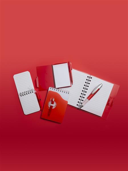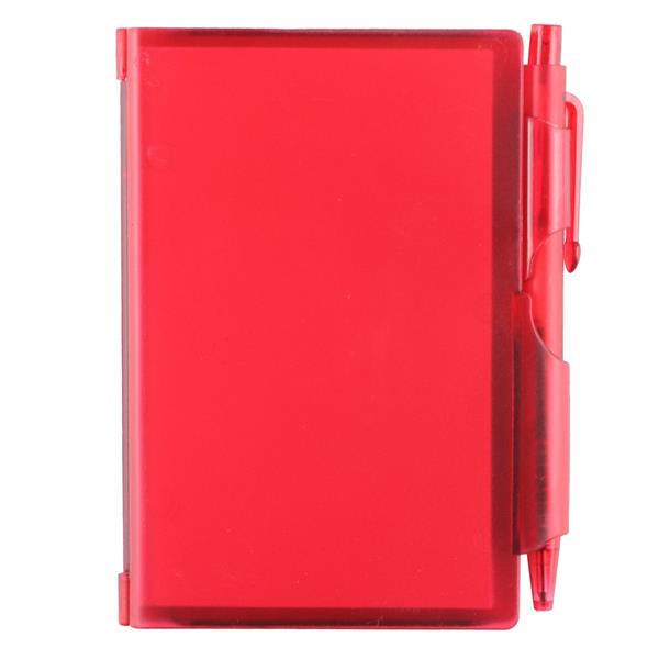 Notatnik (ok. A7, ok. 80 pustych kartek) z długopisem, sztywna okładka