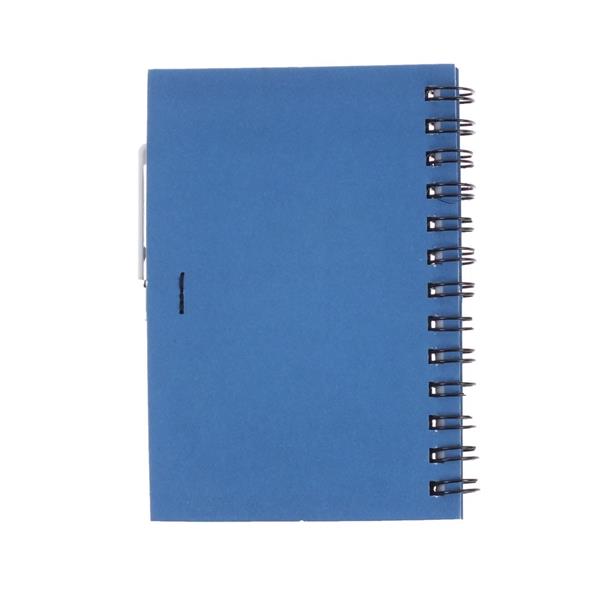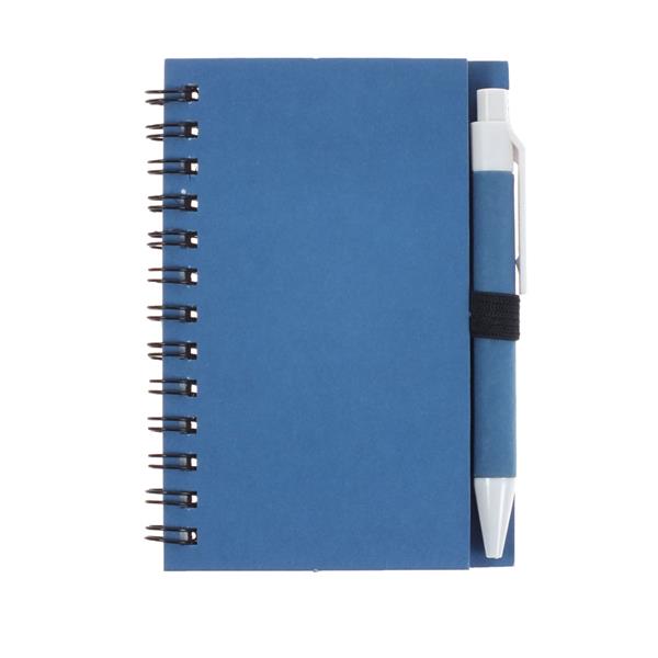 Notatnik (ok. A7, 50 kartek w linie) z dopasowanym kolorystycznie długopisem, twarda okładka, spiralne bindowanie