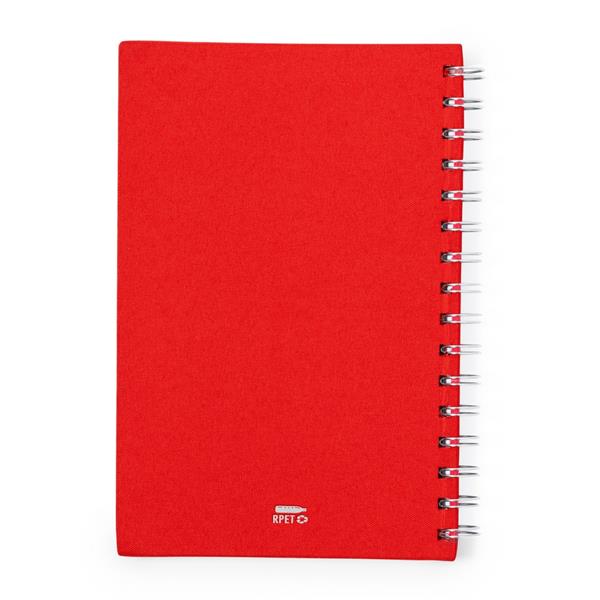 Notatnik A5 (100 kartek w linie), twarda okładka wykonana z RPET, kartki w 100% z recyklingu z mikroperforacją, spiralne bindowanie