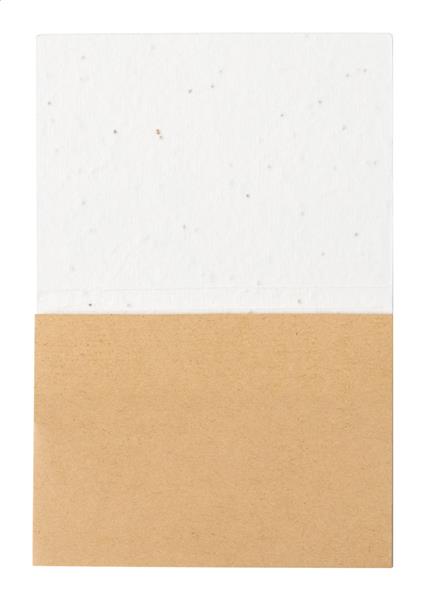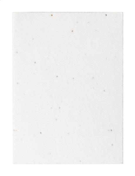 Notatnik samoprzylepny pokryty papierem makulaturowym z 50 karteczkami. Papierowa okładka z nasionami zawiera nasiona petunii w różnych kolorach, które można sadzić, oddzielając okładkę od notatnika.