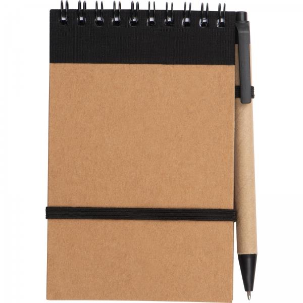 Ekologiczny notes (70 stron w linie z listą rzeczy do zrobienia, gramatura papieru 70g/m2) na spirali w komplecie z długopisem.