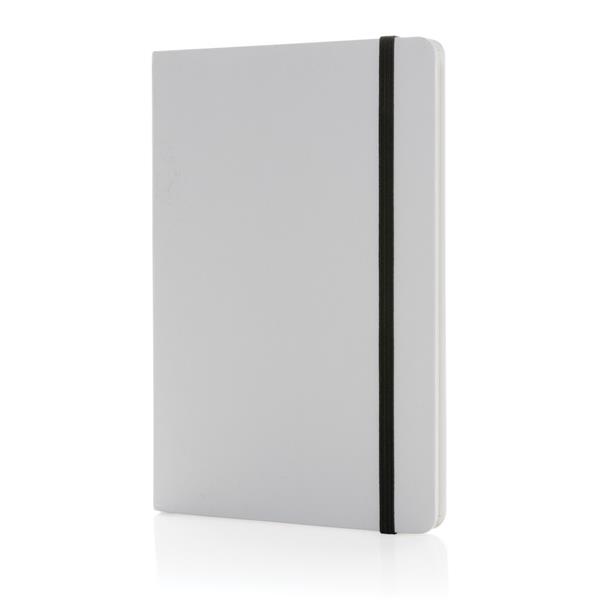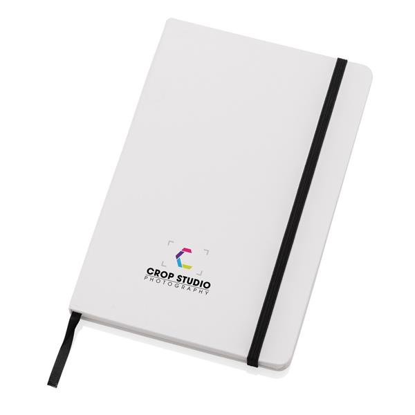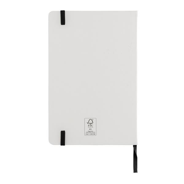 Notatnik A5 (80 białych kartek w linie o gramaturze 120 g/m2), okładka wykonana z papieru kraftowego z certyfikatem FSC®, tasiemka zakładkowa, strony z papieru kamiennego, w opakowaniu z papieru kraftowego z certyfikatem FSC® mix, ślad węglowy produktu: 1 kg CO2