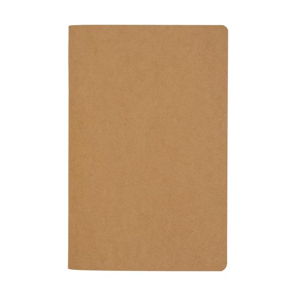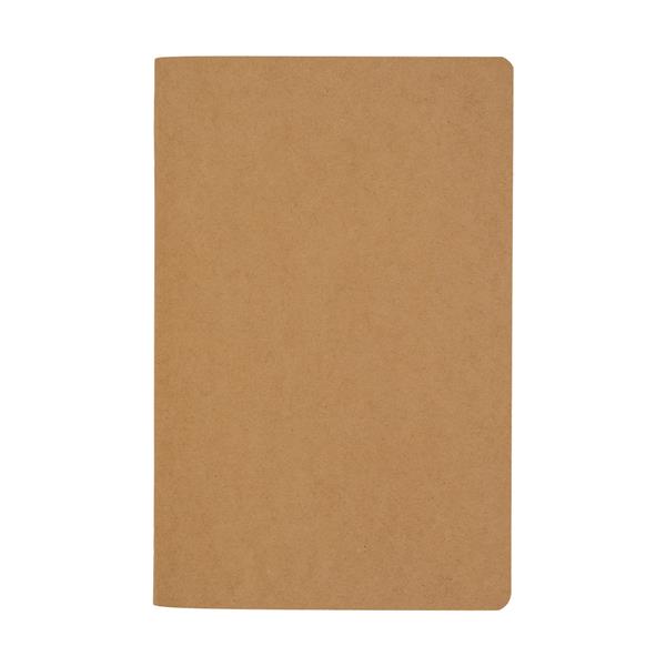 60 kartkowy notes z brązowego papieru, gładkie strony o gramaturze 70 g/m2. Zszywane kartki. Okładka o gramaturze 250g/m2.