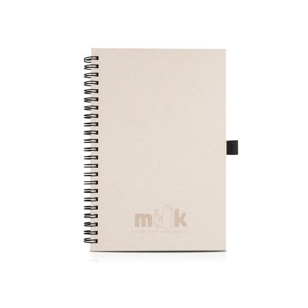 Notes A5 na spirali wykonany ze zrecyklingowanych kartonów po mleku. Oryginalny, praktyczny i super ekologiczny. 70 czystych kartek.