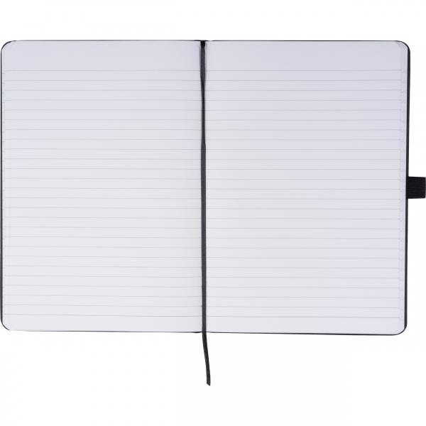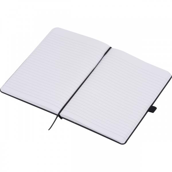 Notes A5 z okładką PU, zakładką, elastyczną gumką zamykającą, pętlą na długopis i 120 stronami w linie wykonanymi z papieru kamiennego. Ten specjalny papier jest wykonany z węglanu wapnia i jest odporny na olej i wodę, antystatyczny, nieziarnsty, trudnopalny i co najważniejsze, odporny na rozdarcie.
