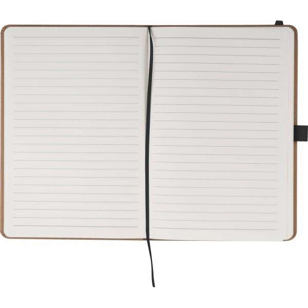 Notes A5 wykonany z papieru z recyklingu ze 160 stronami w linie, zakładką i pętlą na długopis w kolorze dopasowanym do elastycznej gumki zamykającej.