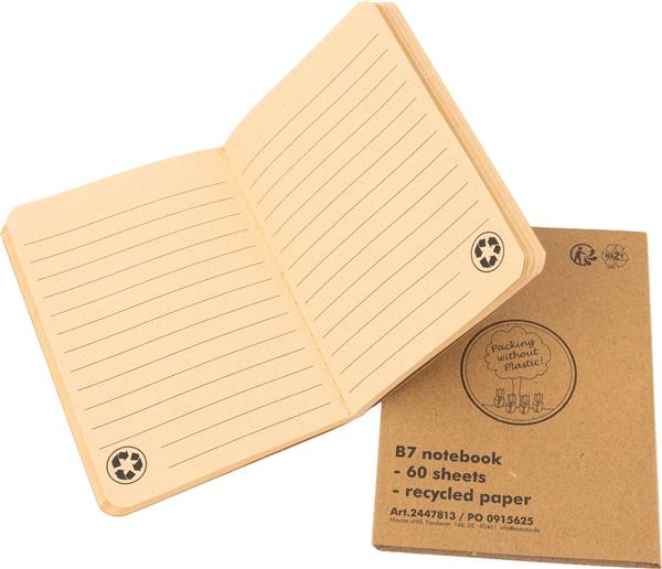 Notes B7 wykonany z papieru pochodzącego z recyklingu, z 60 kartkami w linie, o gramaturze 70g/m2.