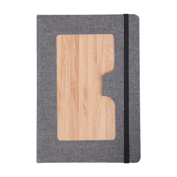 80-kartkowy notes (70 g/m2) w linie w bambusowej oprawie. Notes posiada uchwyt na długopis, elastyczną gumkę oraz tasiemkę do zaznaczania stron.