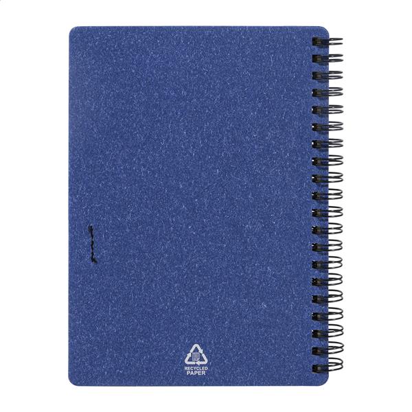 Notes spiralny z papieru z recyklingu, 80 kartek w linie. Format A6. W zestawie papier z recyklingu i długopis z polipropylenu z recyklingu z niebieskim wkładem.