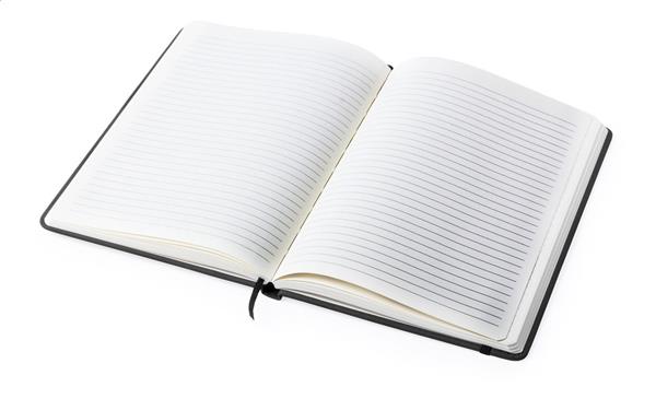 Notes z okładką ze skóry PU z 100 kartkami w linie. Zawiera zakładkę i gumkę.