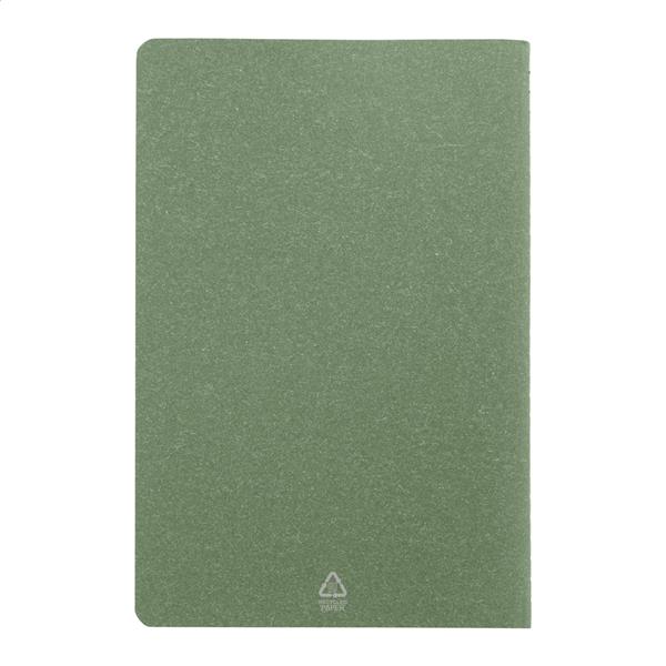 Notes z okładką z papieru makulaturowego i 60 kartkami w linie z papieru kraft makulaturowego. Format A5.