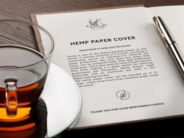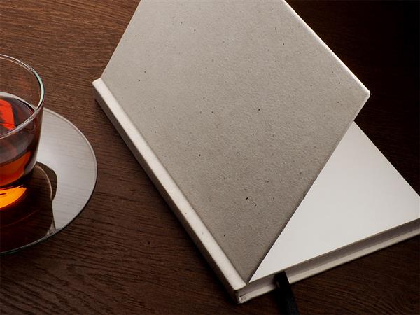 Papier ze słomy pszenicznej Dołączona próbka materiału recyklingowego 80 kartek w linie Rozmiar: (A5) 14,5 x 21 cm Znakowanie: 236200000 Materiał: Eco-Friendly recycled paper – konopie Kolor: off-white