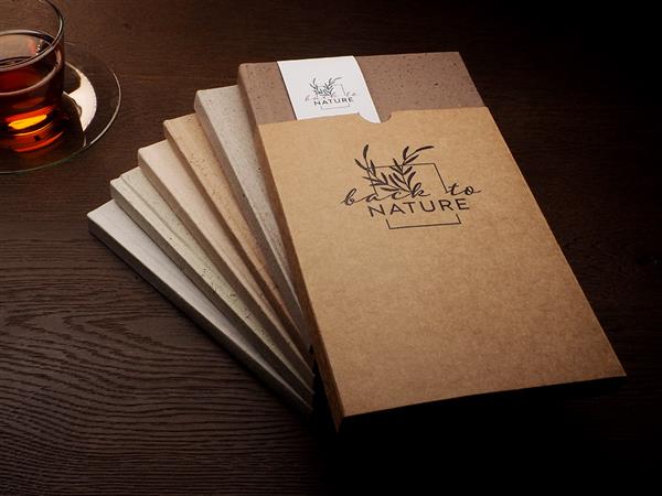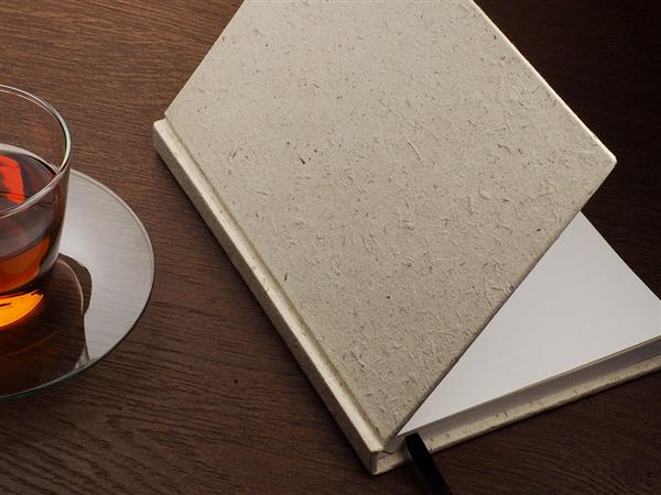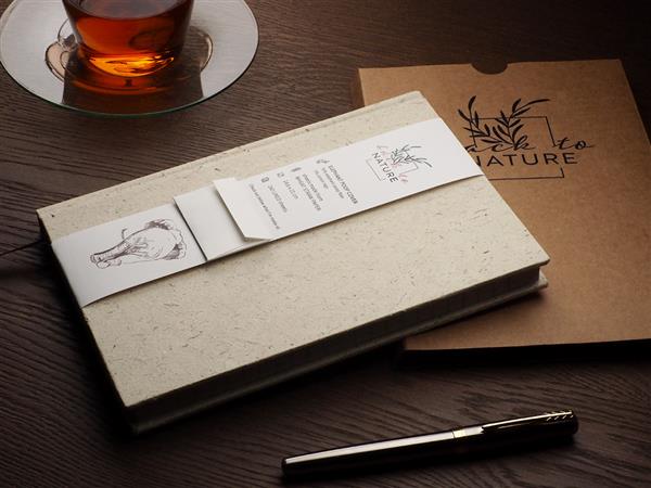 Papier ze słomy pszenicznej Dołączona próbka materiału recyklingowego 80 kartek w linie Rozmiar: (A5) 14,5 x 21 cm Znakowanie: 236200000 Materiał: Eco-Friendly recycled paper – kupa słonia Kolor: ecru