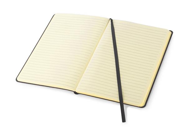 Notes ELIN A5 wykonany jest z papieru. Stworzony w całkowicie ekologiczny sposób, zachowując żywotność lasów. Papier okładki jest delikatnie pognieciony, dzięki czemu notes wygląda bardzo oryginalnie, ciekawie i naturalnie. Okładka obszyta jest białą nitką na brzegach, a wewnątrz notesu została umieszczona czarna wstążeczka pełniąca funkcję zakładki. Notes zawiera 80 kartek w linie.