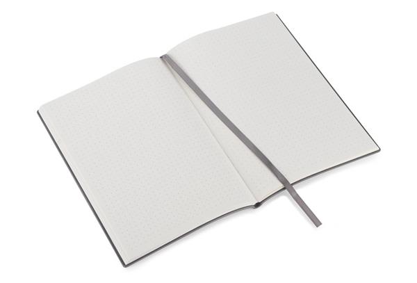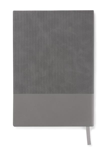 Notes FLAF w formacie A5 występuje w 3 stonowanych i eleganckich kolorach. Notes w miękkiej, okładce z łączonych materiałów: skóropodobnego (PU) i imitacji sztruksu, który jest niezwykle przyjemny w dotyku. Zawiera 80 kartek w kropki. W środku dodatkowo praktyczna wstążeczka – zakładka.