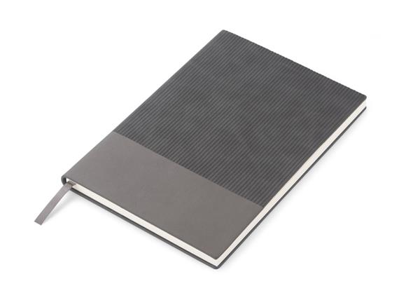 Notes FLAF w formacie A5 ma miękką okładkę łączącą materiał skóropodobny (PU) z imitacją sztruksu, co nadaje mu przyjemną, tekstylną fakturę. W środku znajduje się 80 kartek w kropki oraz praktyczna wstążka pełniąca funkcję zakładki.