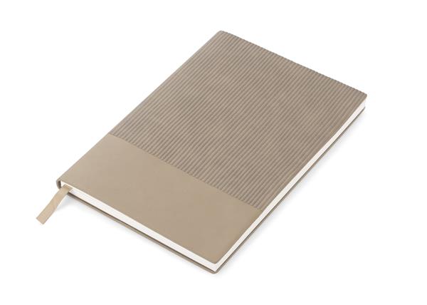 Notes FLAF w formacie A5 ma miękką okładkę łączącą materiał skóropodobny (PU) z imitacją sztruksu, co nadaje mu przyjemną, tekstylną fakturę. W środku znajduje się 80 kartek w kropki oraz praktyczna wstążka pełniąca funkcję zakładki.
