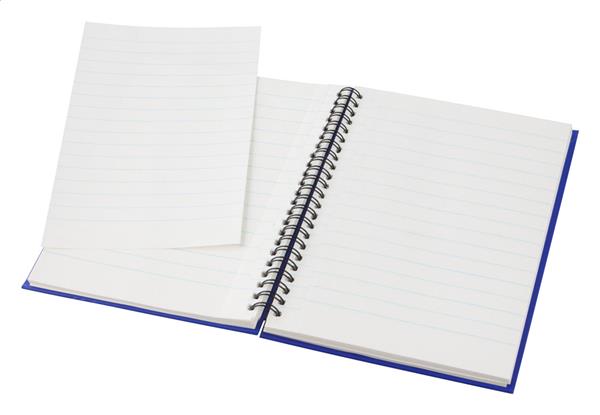Notes spiralny A5 z papieru z recyklingu z 80 kartkami w linie. Description: Notes spiralny A5 z papieru z recyklingu z 80 kartkami w linie. Primary Color: niebieski Gramatura 1: 70 g/m2 Material 1: Papier z recyklingu Rozmiar: 150×215×12 mm