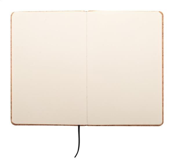 Notes A5 z naturalnego korka z 80 gładkimi kartkami i gumką.
