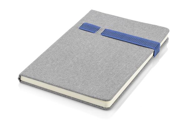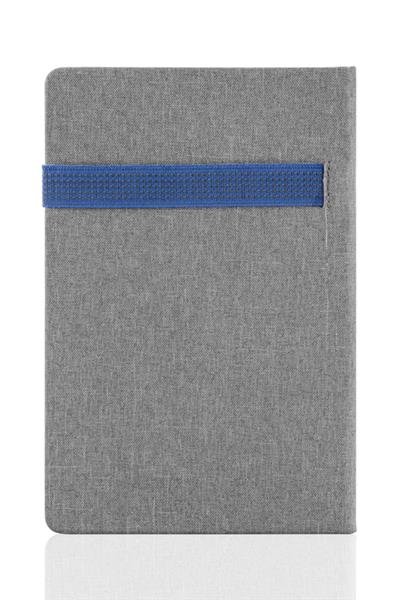 Notes HOLDI posiada bardzo ciekawą okładkę w kolorze szarym, wyglądem przypominającą lniany materiał. Zamykany jest za pomocą kolorowej gumki, która może służyć również jako miejsce na długopisy lub inne niezbędne przedmioty. Notes A5. 80 kartek w linie. Grubość papieru 80 gsm
