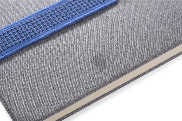 Notes HOLDI posiada bardzo ciekawą okładkę w kolorze szarym, wyglądem przypominającą lniany materiał. Zamykany jest za pomocą kolorowej gumki, która może służyć również jako miejsce na długopisy lub inne niezbędne przedmioty.