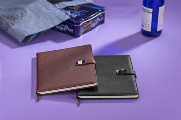 Notes IDELO o klasycznej, dopracowanej formie, z okładką z materiału skóropodobnego (PU) i paskiem zamykanym na magnes. W środku znajduje się 80 kartek w kropki oraz wstążka pełniąca funkcję zakładki. Format B5 zapewnia dużo miejsca do notowania, a całość zapakowano w estetyczne pudełko kraftowe.