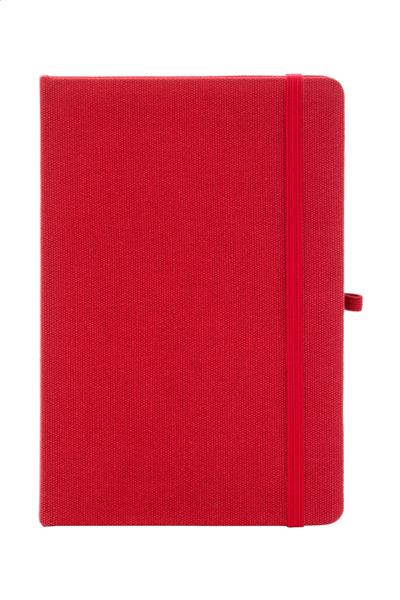 Notes z okładką z bawełny z recyklingu, 80 kartek w linie z papieru z recyklingu. Z dopasowaną kolorystycznie zakładką, gumką i uchwytem na długopis. Rozmiar A5.