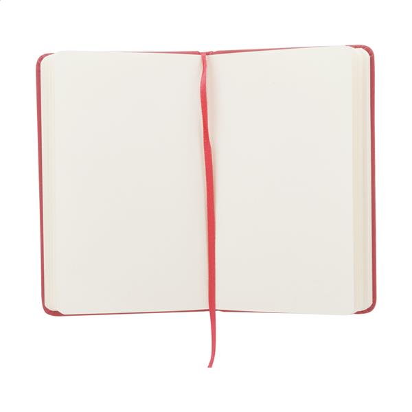 Notes z okładką ze skóry PU z 100 gładkimi kartkami. Zawiera zakładkę i gumkę. Rozmiar A6.