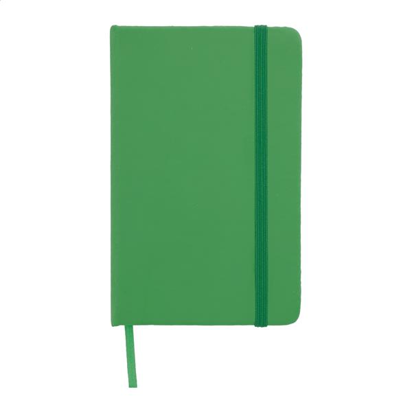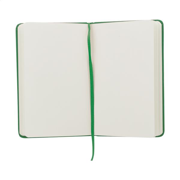 Notes z okładką ze skóry PU z 100 gładkimi kartkami. Zawiera zakładkę i gumkę. Rozmiar A6.