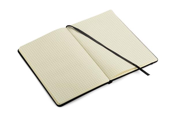 Notes LAPRE w formacie A5 to praktyczny wybór do codziennego notowania – posiada kartki w kratkę w kolorze ecru, szytą oprawę oraz elastyczną gumkę ułatwiającą zamykanie. Strukturyzowana okładka o wyczuwalnej fakturze nadaje mu nowoczesny wygląd i dobrze prezentuje się jako nośnik logo. Dodatkowo notes wyposażony jest w tasiemkę pełniącą funkcję zakładki.