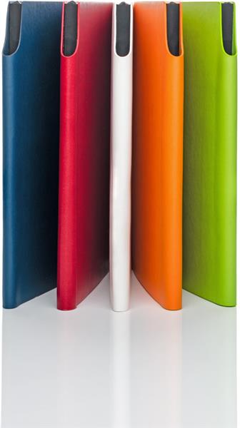 Notes MOLI formatu A5 w żywych, modnych kolorach. Notes zawiera 96 kartek w linie oraz praktyczną zakładkę – wstążeczkę. Okładka notesu wykonana z miękkiego materiału skóropodobnego (PU), nieusztywniana. Wewnątrz grzbietu notesu ciekawie zaprojektowane miejsce na długopis.