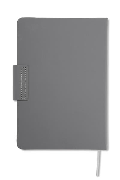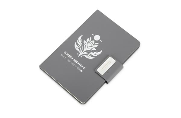 Notes NORO A5 to elegancki gadżet biurowy z matową okładką i charakterystycznym zapięciem na magnes, wykończonym dekoracyjną blaszką. W środku znajduje się 96 kartek w kratkę w kolorze ecru, zszywanych dla wygodnego użytkowania. Stylowy i funkcjonalny – doskonale sprawdzi się jako nośnik identyfikacji wizualnej marki.