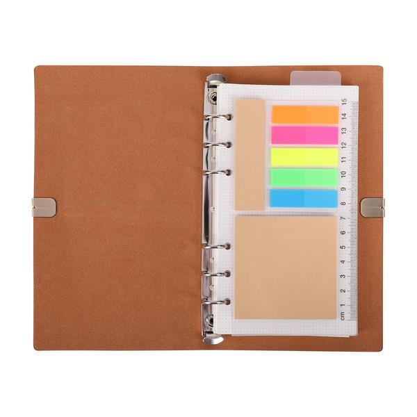 Notes w stylu retro w miękkiej okładce, zamykany elastyczną gumką. Zawiera 60 wymiennych kartek (20 w kropki, 40 w kratkę), sztywną kartę PCV z karteczkami indeksującymi z papieru kraft 1×25 (75 x20mm), kartek samoprzylepnych 1×25 (70 x70 mm), foliowych kartek indeksujących 5×25 (12×45 mm). Idealny rozmiar w podróży i do codziennych wpisów.