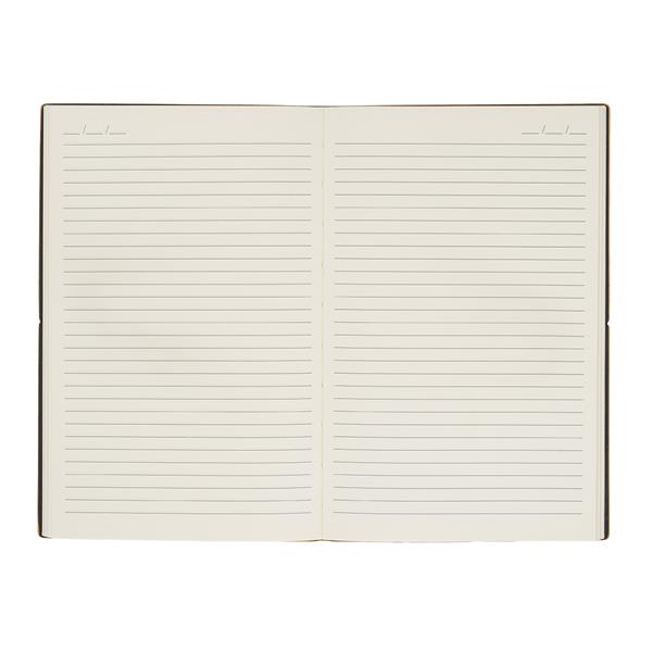 Notatnik w okładce ze skóry pochodzącej z recyklingu (75%), zamykany elastyczną gumką. Notatnik posiada tasiemkę do zaznaczania stron. 80 kremowych kartek w linie, gramatura papieru 80 g/m2.