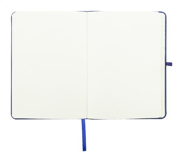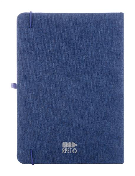 Notes w okładce z poliestru RPET, ze 100 gładkimi kartkami. Z dopasowaną kolorystycznie gumką, zakładką i uchwytem na długopis. Rozmiar A5.