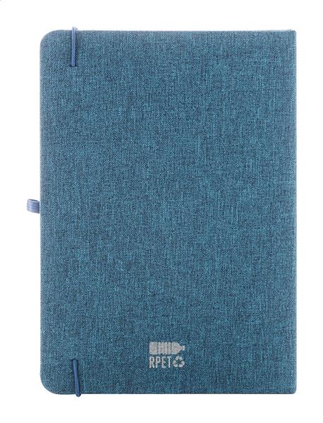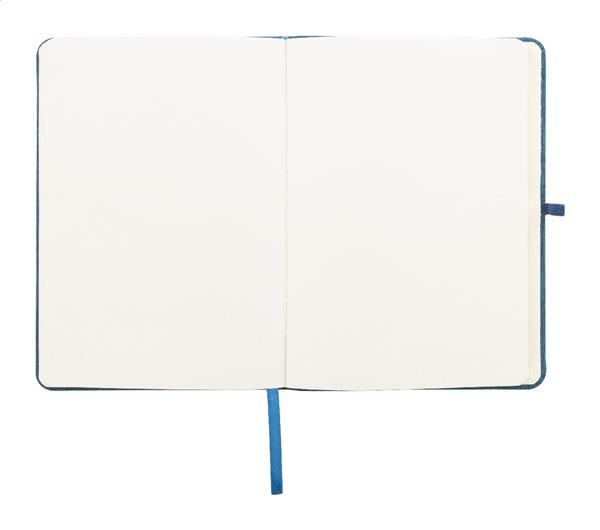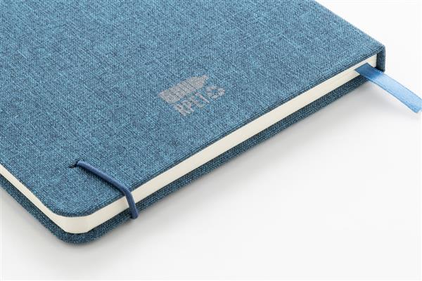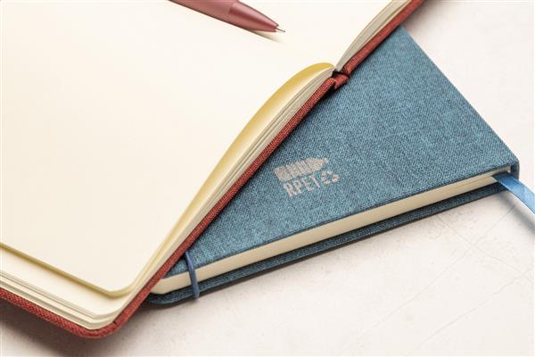 Notes w okładce z poliestru RPET, ze 100 gładkimi kartkami. Z dopasowaną kolorystycznie gumką, zakładką i uchwytem na długopis. Rozmiar A5.
