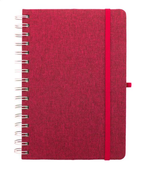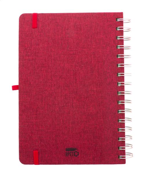 Notes spiralny pokryty poliestrem RPET z podstawą na telefon i uchwytem na tablet. Z 70 kartkami w linie z papieru kraft z recyklingu, gumowym paskiem i uchwytem na długopis. Rozmiar A5.